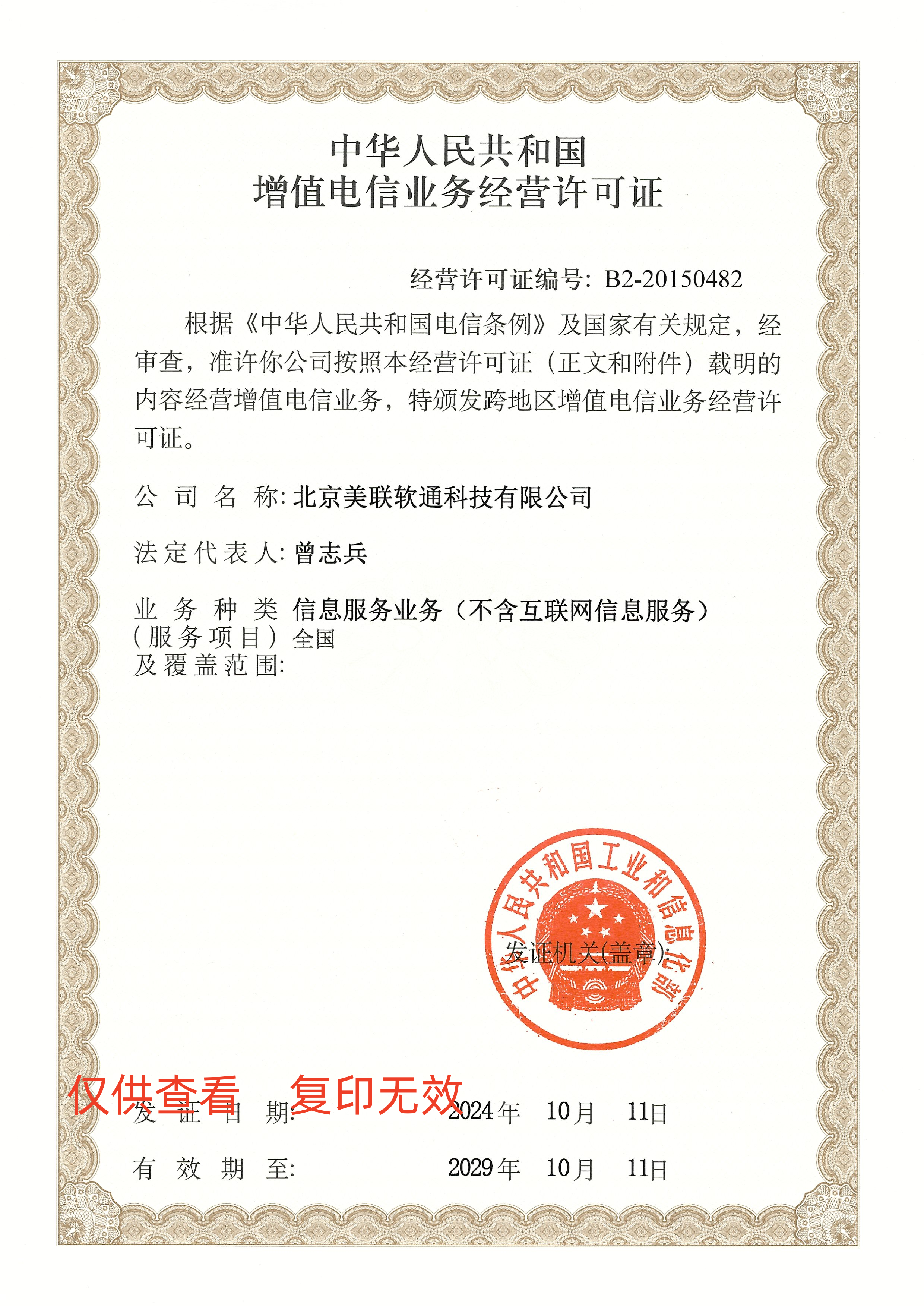 增值电信业务经营许可证: